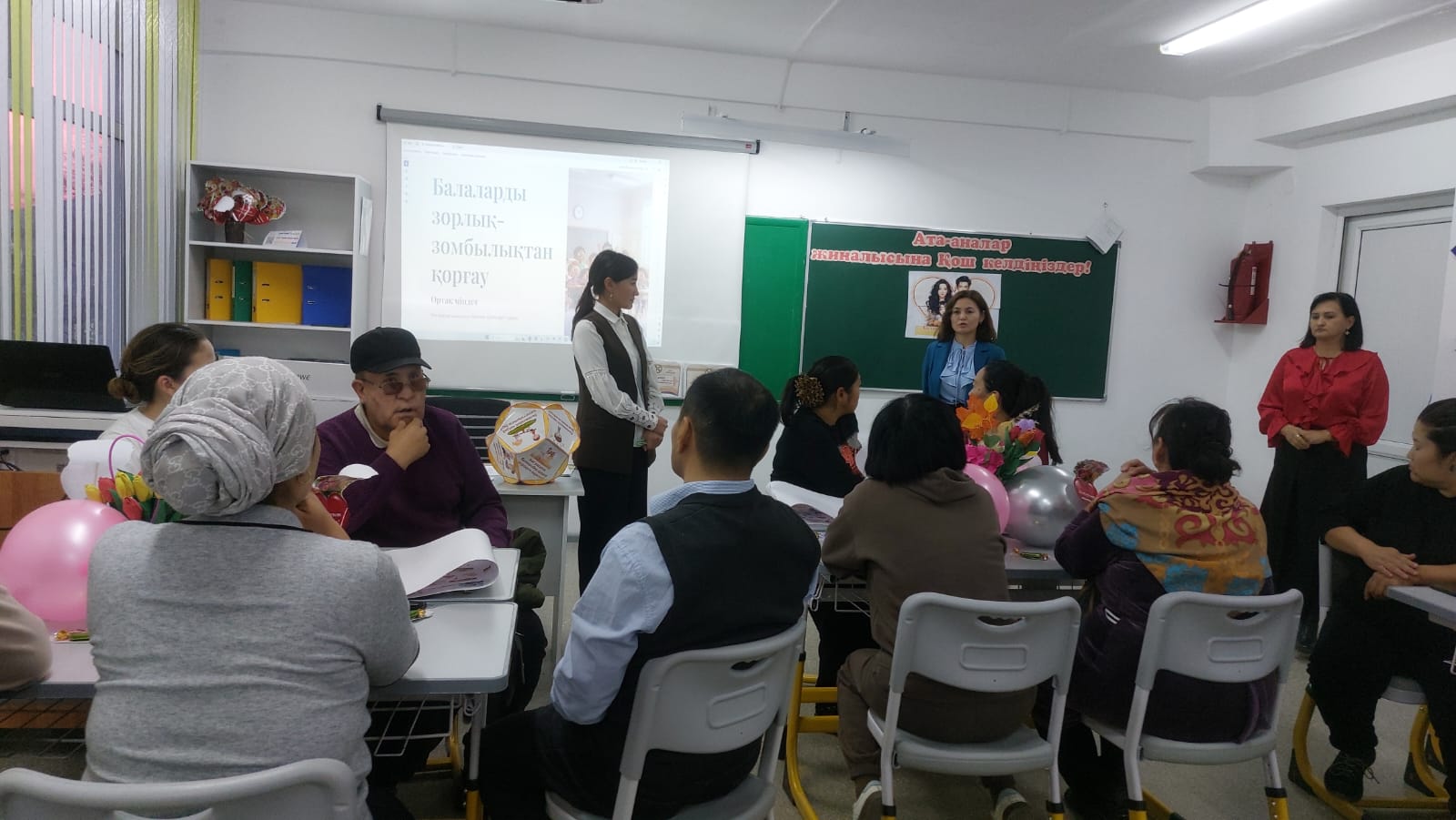 5—сынып ата—аналарымен "Жасөспірімді зорлық—зомбылықтан қорғаудың негізі—сенім мен жеке шекараға құрмет" тақырыбында сабақ ұйымдастырылды. 🔹Мақсаты: жасөспірімді зорлық-зомбылықтан қорғау үшін жағдай жасау: