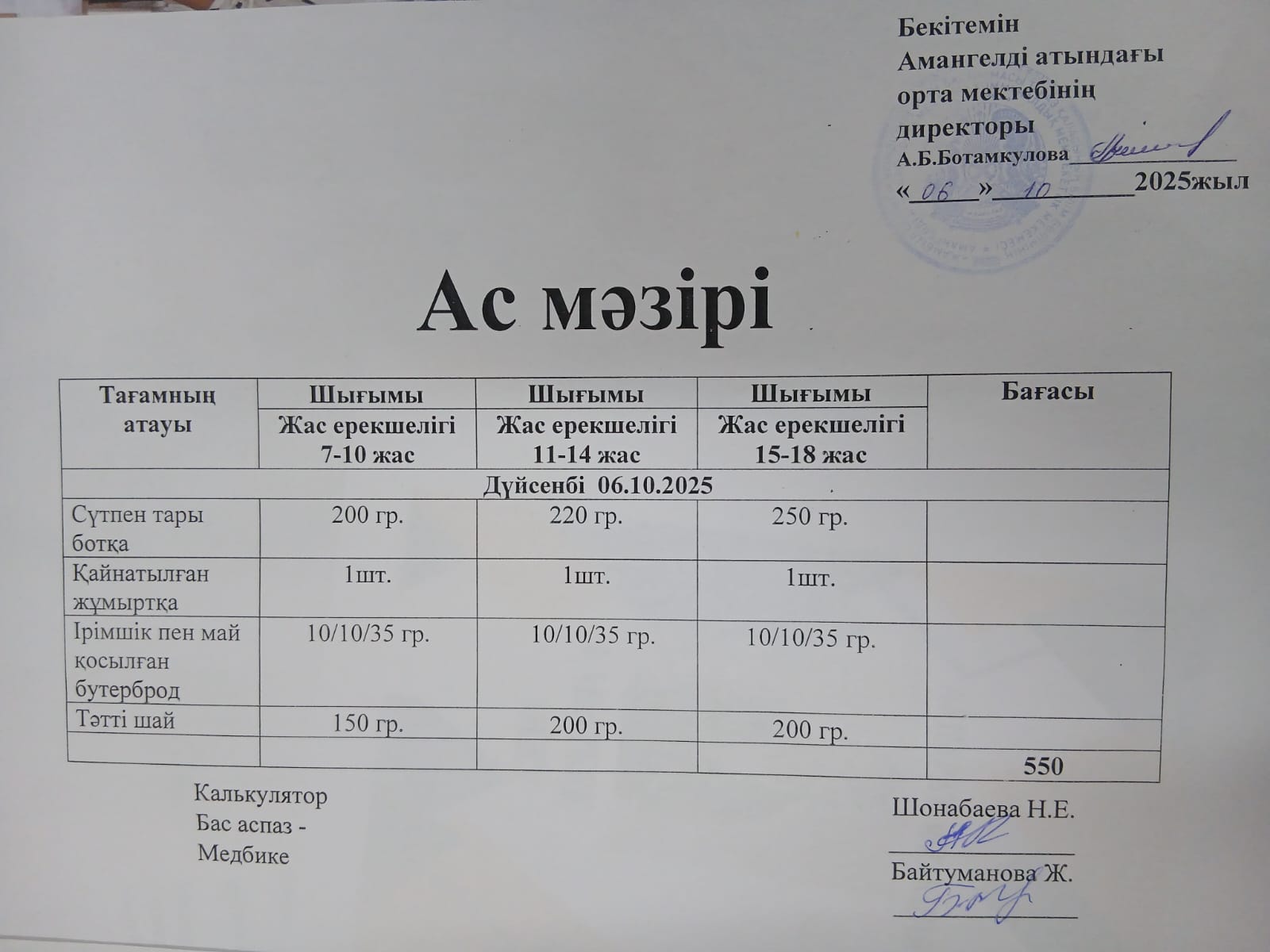 күнделікті ас мәзірі » Сш Амангелды