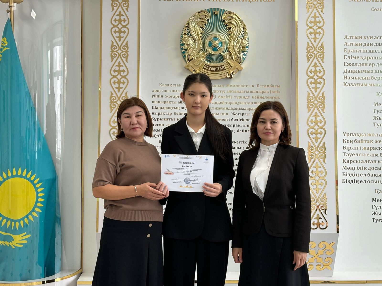 Тараз қаласы М.Х.Дулати атындағы Тараз Университеті "Филология және аударма ісі кафедрасы" "Words & images: English creativity contest" шығармашылық байқауының ІІІ дәрежелі дипломның иегері 9 "А" сынып оқушысы Бақытжанқызы Құндызай