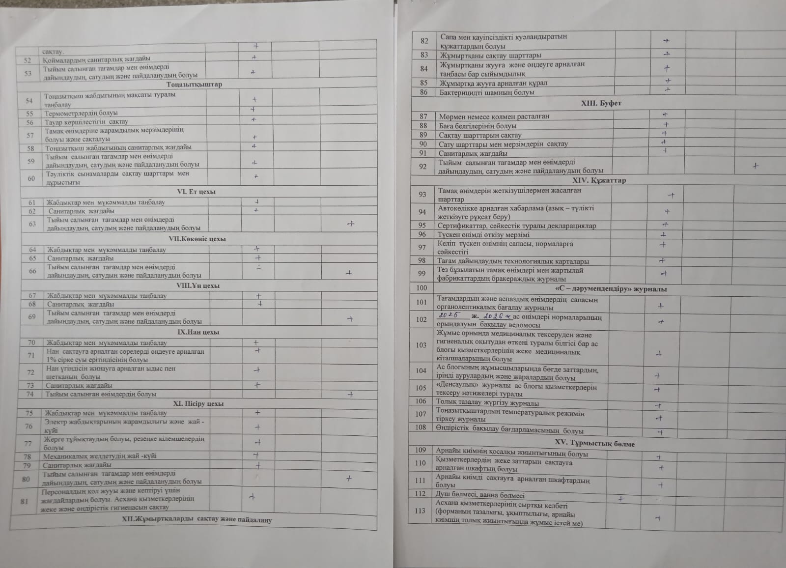 » » » Тамақтану сапасына мониторинг жүргізу актісі №1