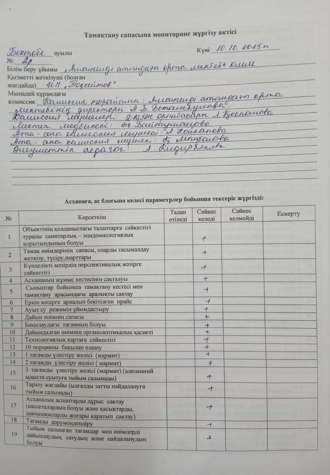 Тамақтану сапасына мониторинг жүргізу актісі №4 » Сш Амангелды