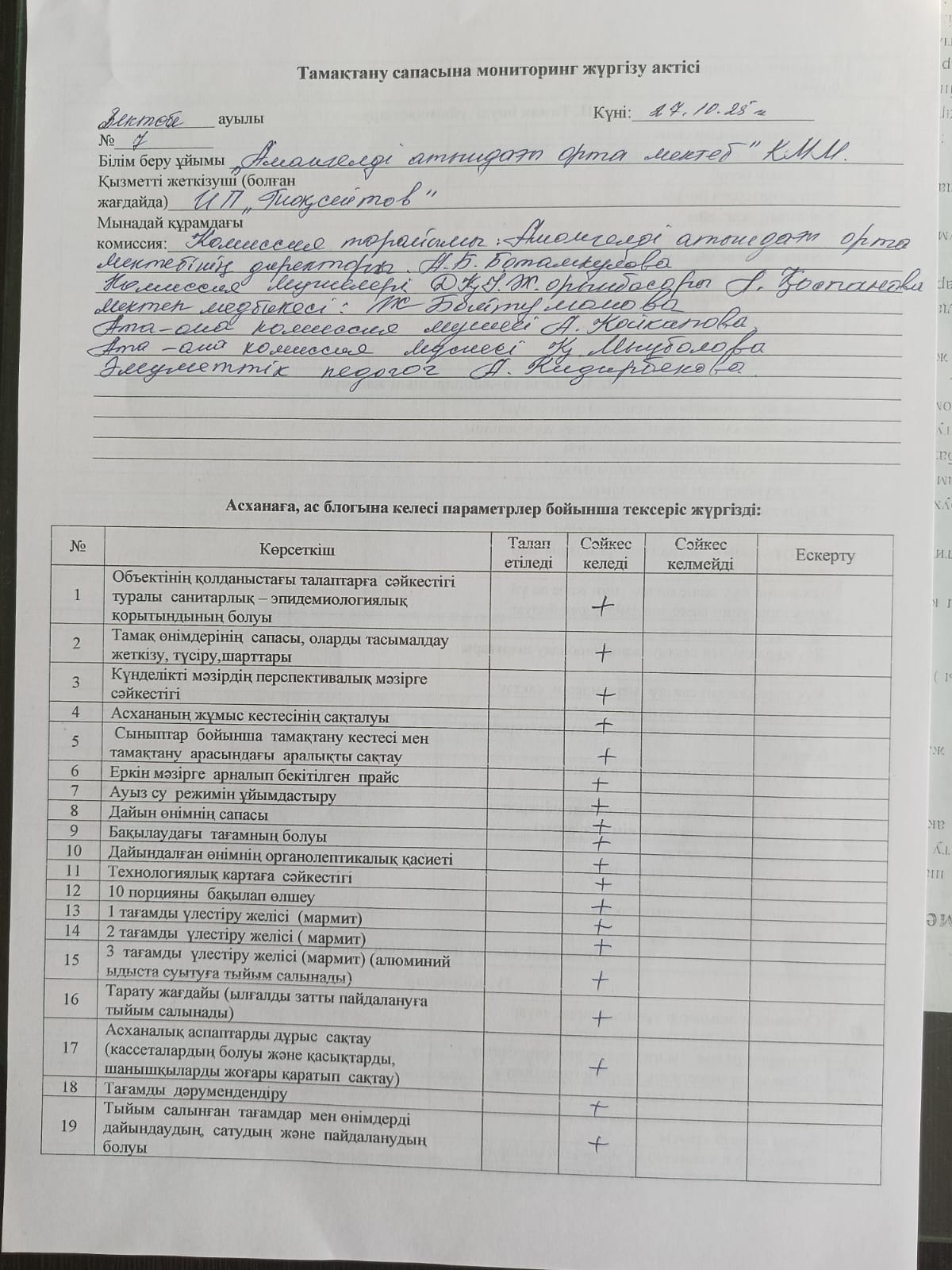 Тамақтану сапасына мониторинг жүргізу актісі №7 » Сш Амангелды