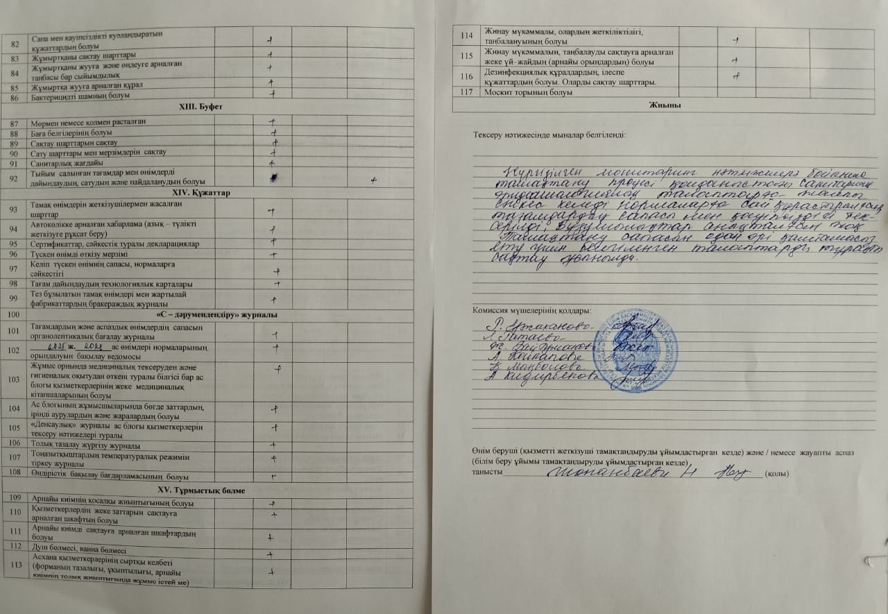 » » » Тамақтану сапасына мониторинг жүргізу актісі №9