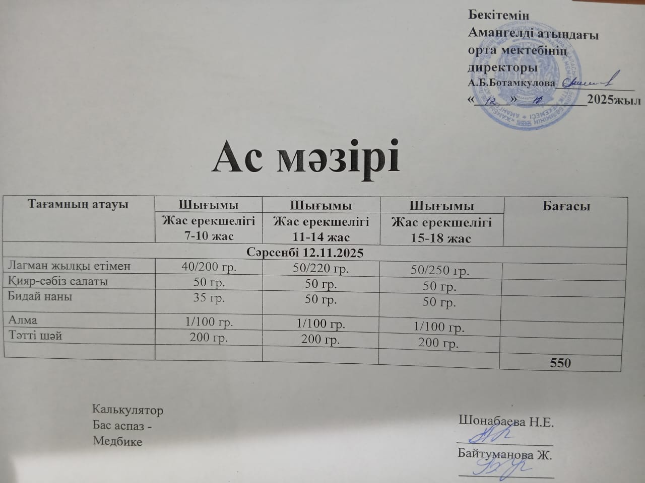 күнделікті ас мәзірі » Сш Амангелды