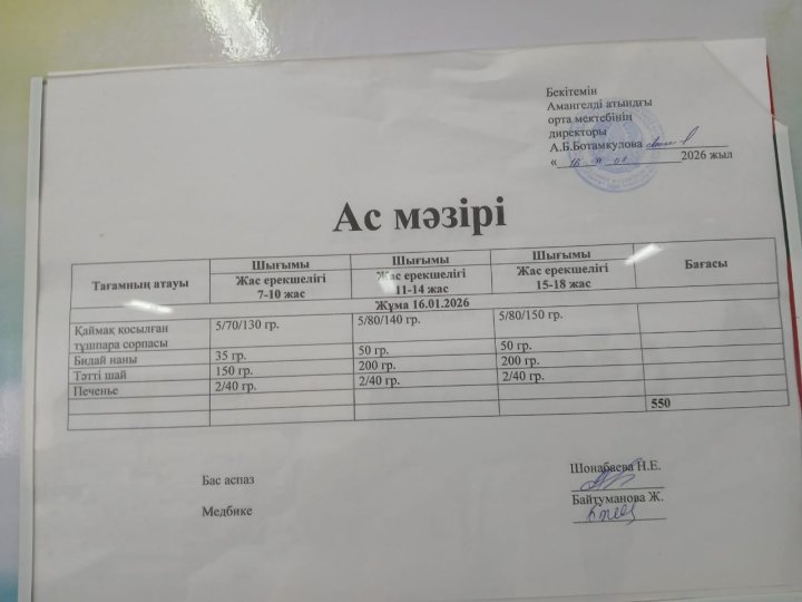 Күнделікті ас мәзірі » Сш Амангелды